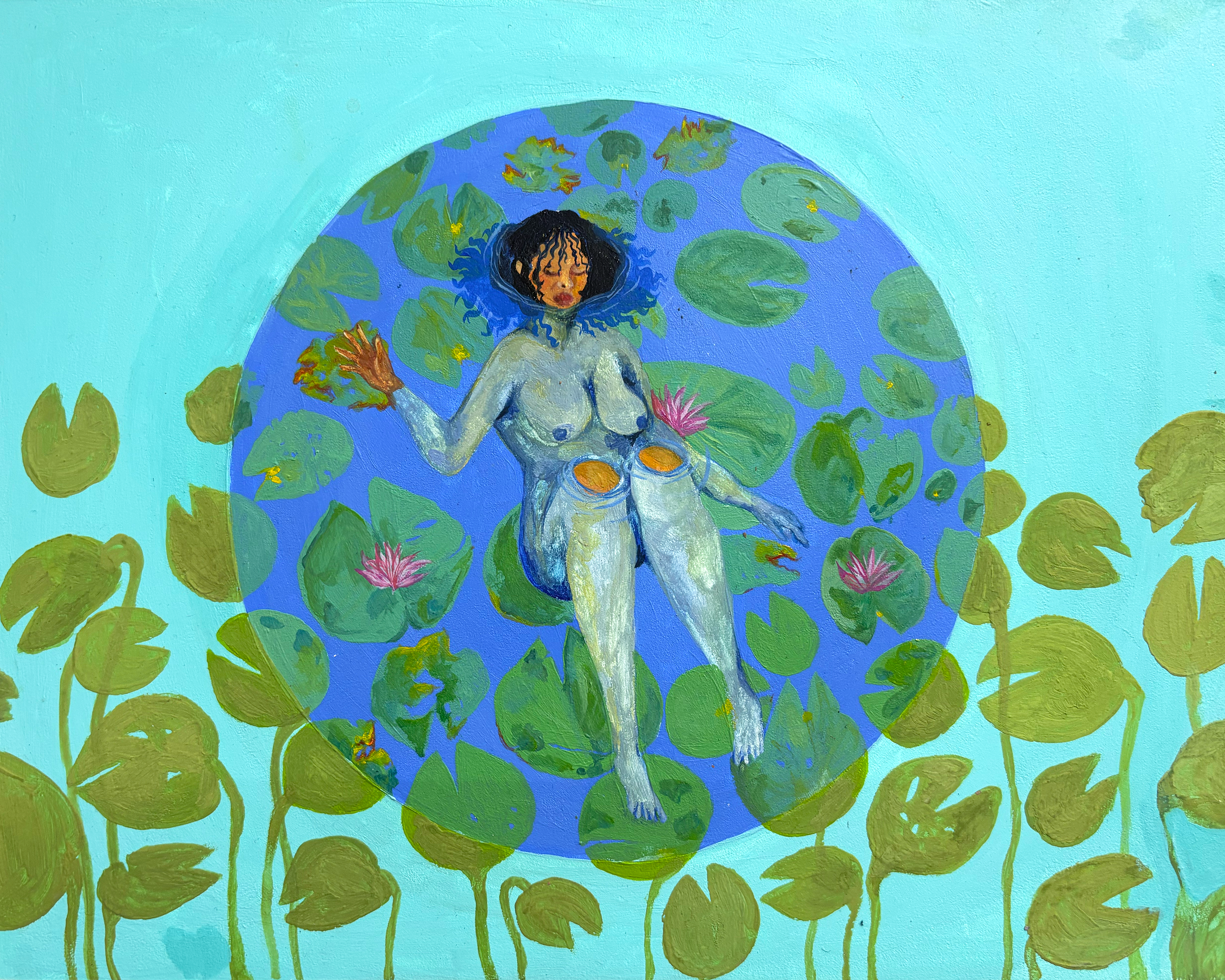 Serene in Shallow Waters, Acrylic and gouache on wood panel, 10 x 8 inches