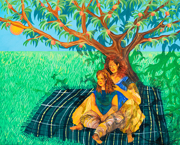 In Her Own World and Becoming Yours, Acrylic and gouache on wood panel, 10 x 8 inches