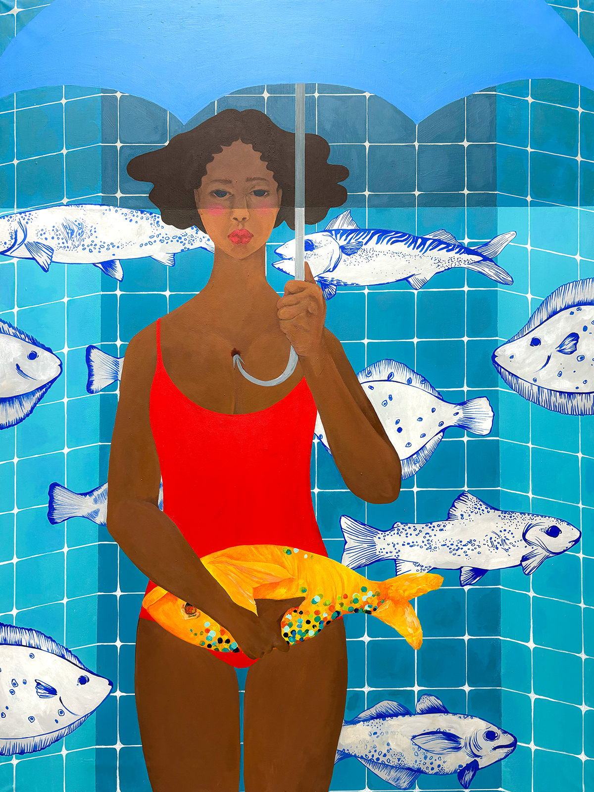 Hook, Line, And .... , Acrylic on canvas, 36 x 48 inches